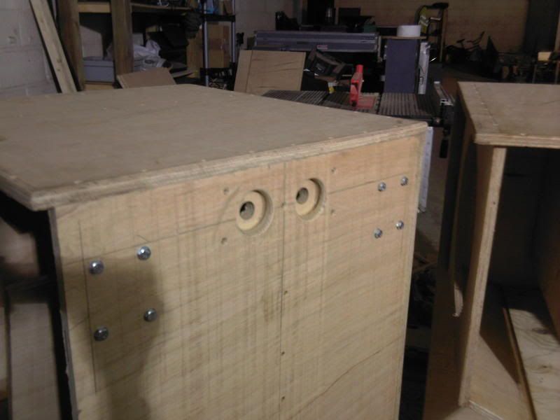 Holes for speakons & bolt fittings for castors, there are M8 T nuts on the inside.