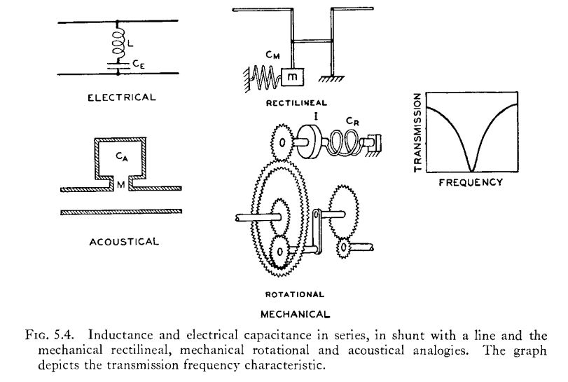 How it works, in the example I showed, is by attenuating the signal passing down the horn at the resonant frequency. The following diagram shows the transmission characteristics for electrical, mechanical and acoustical equivalents. It is from the book Dynamical Analogies, published in 1943. |