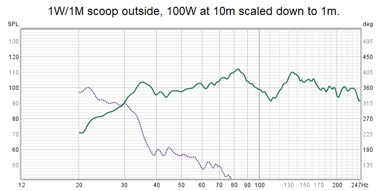 The graph you based your slander on is actually not bad at all if it is half space, flat processing (except for hipass). It slopes gently down 5- 6 dB from 70 Hz to 35Hz. At 35 Hz there is a knee in the response, from there it drops another 4 dB going down to 30 Hz. So it is 10 db down at 30 Hz. The sublows can be boosted within reason to make up for the apparent sensitivity loss, which is actually caused by increasing impedance, and less amplifier power being dissipated in that range. Stack of supers will be a lot worse.....