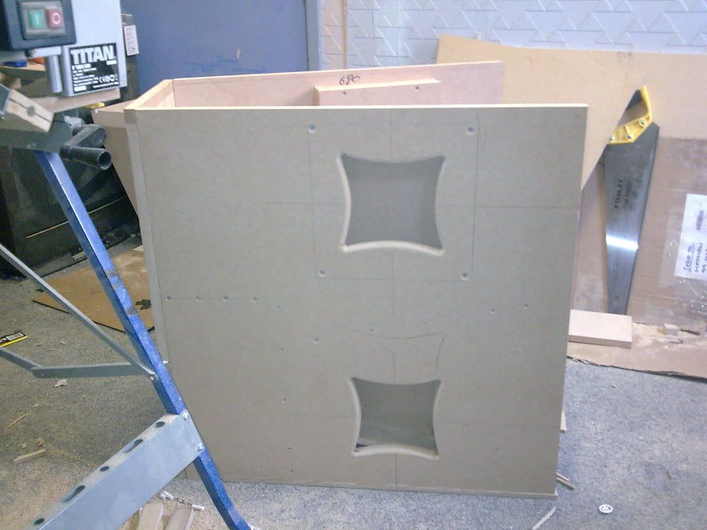 actually, i did read that page before beginning, and i suppose am going for his type 2 design. However I didn't make the throat small enough, so i'll have to put in an extra baffle, more filler n make the back box a bit bigger. also on these drivers the suspension sits proud of the gasket meaning the cone moves out of position when mounted like that. Bit of a bugger. Might have get different cones. These are also obviously Kevlar and I really wanted paper. But they were £7.99 each :)