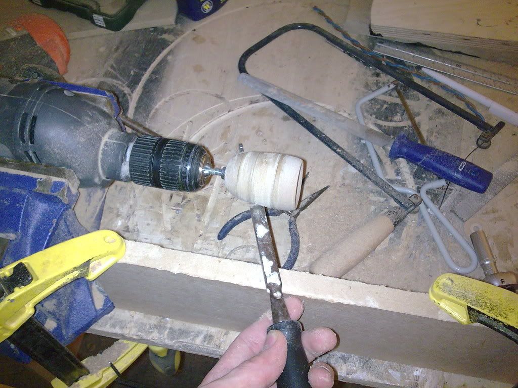 update: bendy mdf isn't bendy enough to form a 6" radius. i've just brok two sheets into little pieces. Cockfeathers! Another square flare it is then....and more bright orange reciepts in me wallet... I'm gonna start with the largest mouth/longest flare that fits in the box, and hopefully that'll be tuned too low and I can make it a bit smaller. Of course this means the phase bung's got to be more square too. New sander belts please!