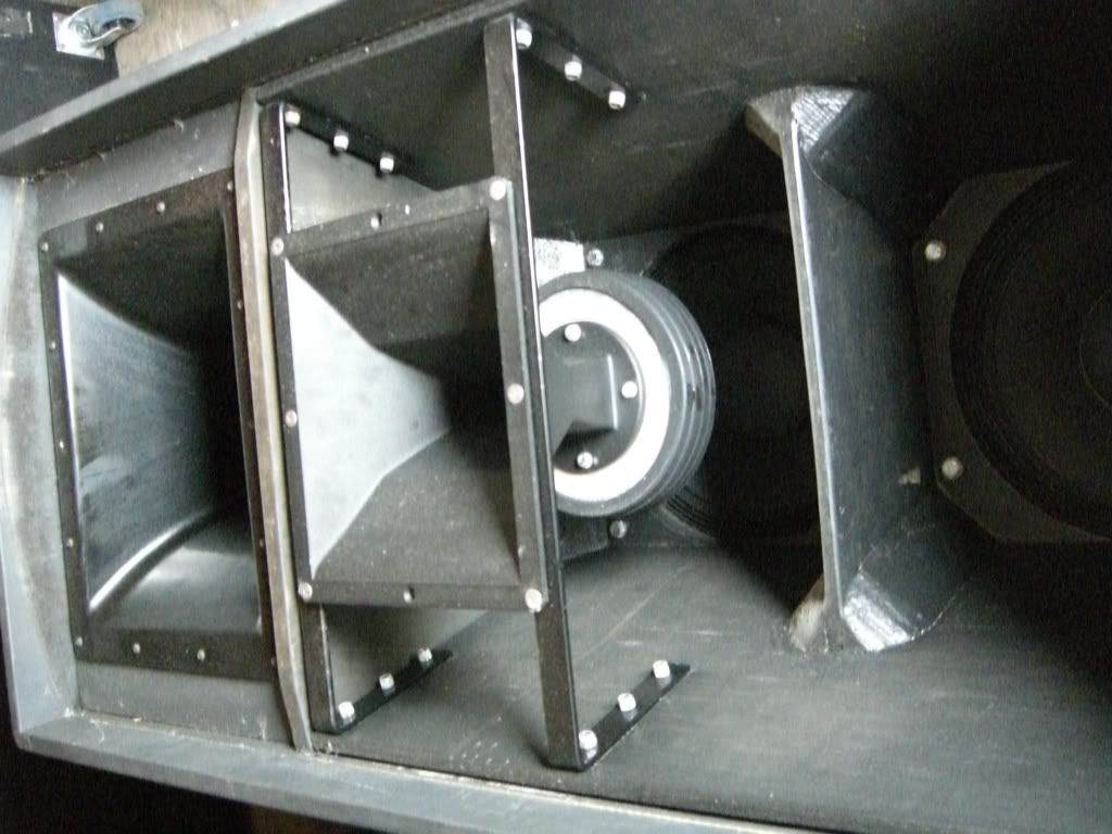 Low mid is a 12" reverse loaded reflex horn covering 100-450hz. I'm going to proto with a P-audio SN12MB