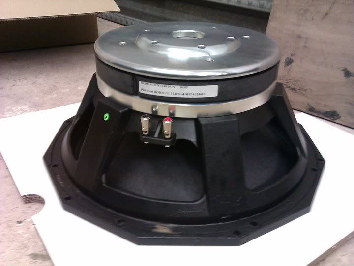 True 12" Cone 5" Voice Coil 96db @ 1w 1000wrms Neo Magnet Structure Shit loads of heatsinks Shit loads of vents Designed in the UK, apparently built here too.