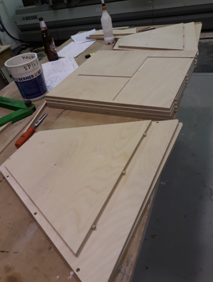 During this last days i've cut the holes for handles and connector plates, done a puttying/sanding job, and painted the cabs with a wood impregnating agent.. soon i'm going to paint them with black poliurethanic paint (water based).
