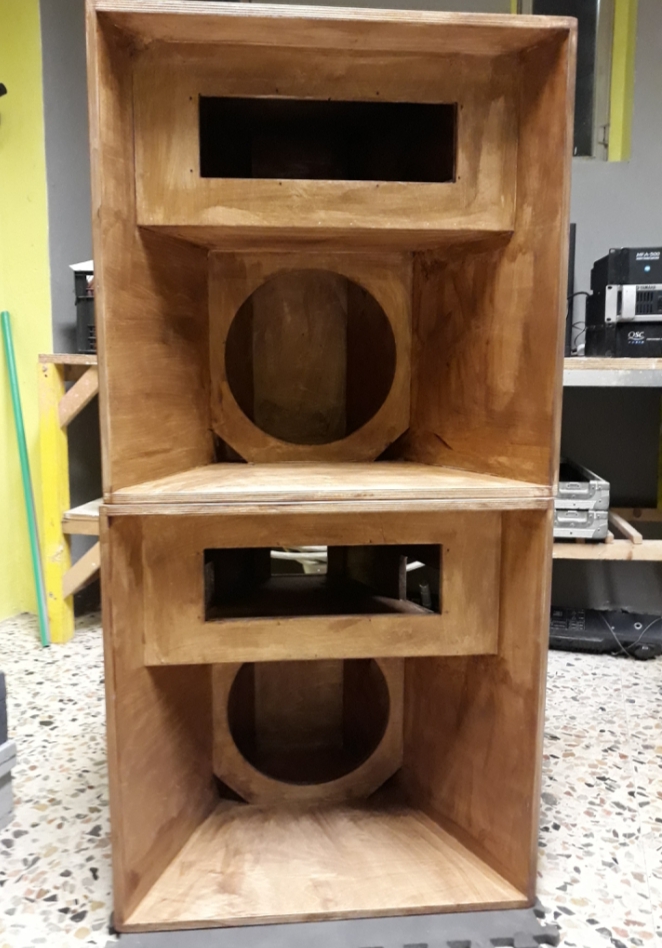 ![]() ![]() ![]() ![]() I loaded them with Eighteensound 12ND610 and my spare hf drivers, placed passive crossover (filter at 2900hz) inside hf chamber, dampen lf chamber.. i tested them indoor (not at full power) and i really liked the sound, clear highs, punchy and loud mids, gets even lower than i thought.. not a kick bin however, so i'm gonna use them from 200hz more or less with hd15 under them. really looking forward to the next gig (30/11 in Milan, IT) to make them shout properly. Oh, i tested them with Kappa12A as well: not bad i have to say.. but the 610 blows it away, even on lower frequencies. I'm quite satisfied with this build, hope to see more progress and pics from FractureClinic, your 3way SMT project was dope mate. Cheers everyone! |