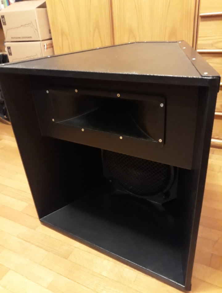 Don't forget to fit the supports inside behind the horn flare cut out to give the HF driver support before you go any further in case you need to drill any screw holes before final finishing.